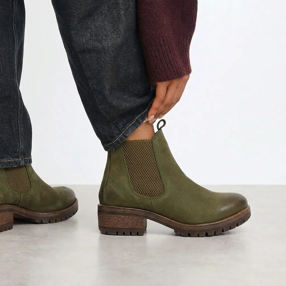 Deze Chelsea boots zijn een stijlvolle en comfortabele aanvulling voor je wintergarderobe. De boots hebben een stoer lijnenspel en enkele leuke details om je mee te onderscheiden. De elastiekinzetten zijn uitgevoerd in een ton-sur-ton kleurstelling en het bovenwerk van nubuckleer heeft fraaie ‘used-look’ meegekregen. Binnenin zijn ze uitgevoerd met een warme textielvoering en leren voetbed. Het zorgt er samen met de rubberen profielzool voor dat dit de perfecte schoenen zijn voor gure herfst- en koude winterdagen. De schachthoogte is ca. 12 centimeter. De zool is 4 cm hoog bij de hak en ruim 2 centimeter onder de voorvoet.