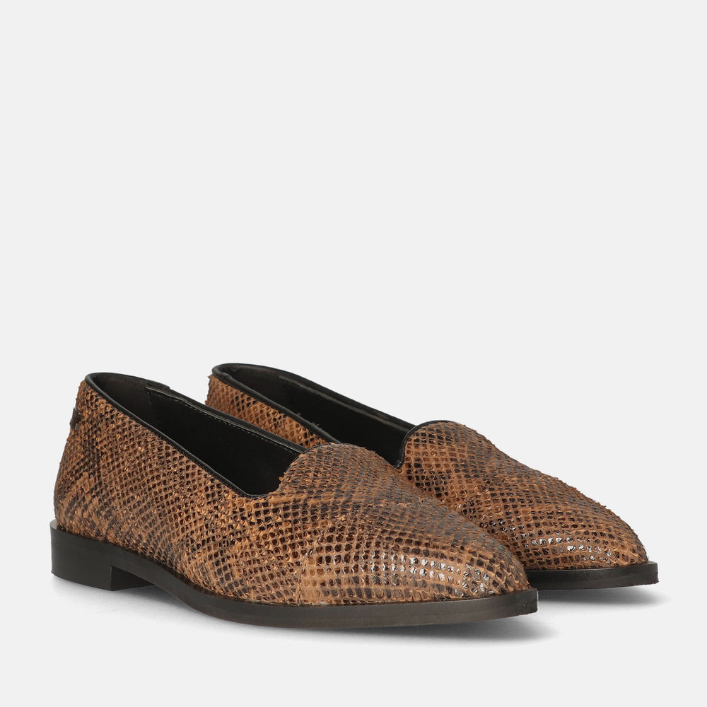 Leren damesloafers met slangenleeroptiek