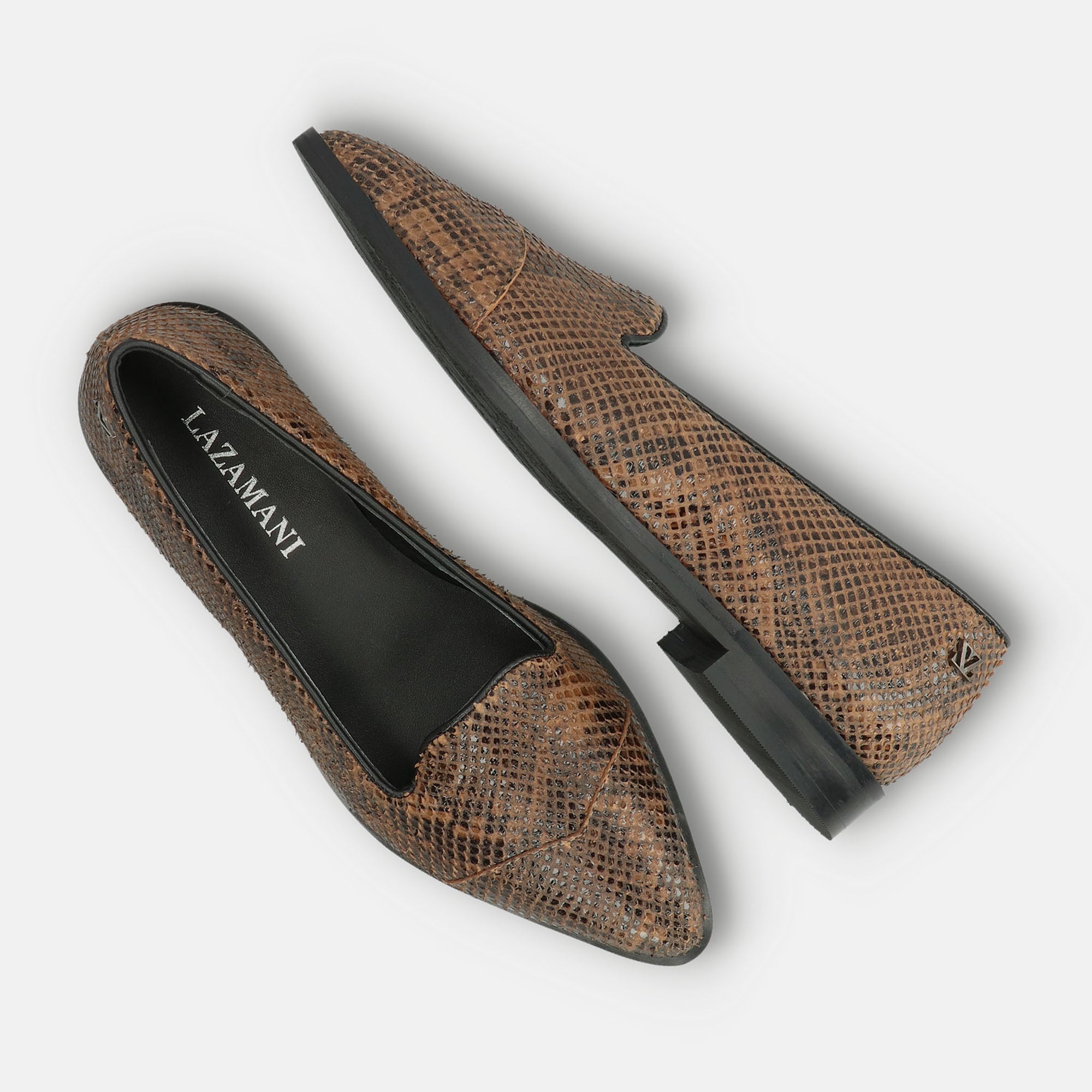 Deze loafer van Lazamani is een subtiele eyecatcher met een flinke dosis flair. De slangenprint geeft ‘m een chique, eigentijdse uitstraling, terwijl het verfijnde silhouet zorgt voor een elegante touch. De leren voering en flexibele rubberzool maken de instapper lekker comfortabel - perfect voor een lange werkdag of lunch in de stad. Combineer ze met een pantalon, jeans of midi-rok en je bent instant klaar om te shinen, zonder moeite.