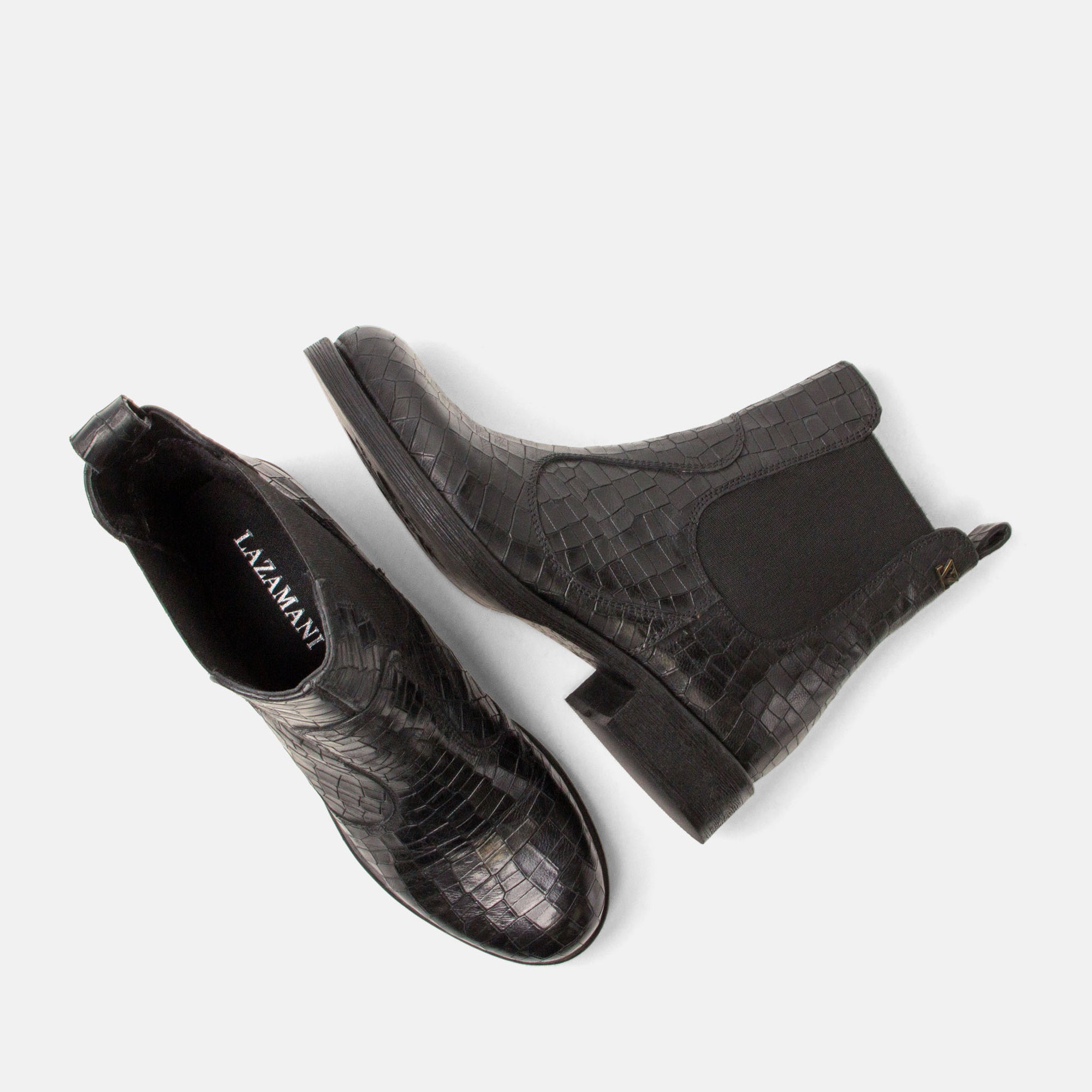 Deze chelsea boots van Lazamani combineren tijdloze elegantie met een stoere twist. Het leer in croco design geeft ze een luxueuze uitstraling en maakt ze net even spannender dan een klassiek model. De elastische inzetstukken zorgen voor een moeiteloze instap, terwijl de lage hak en comfortabele leest perfect zijn voor dagelijks gebruik. Of je nu kiest voor een jeans met blazer voor een city-chic look, of een leren rok voor een gedurfde twist – deze boots maken elke outfit compleet.