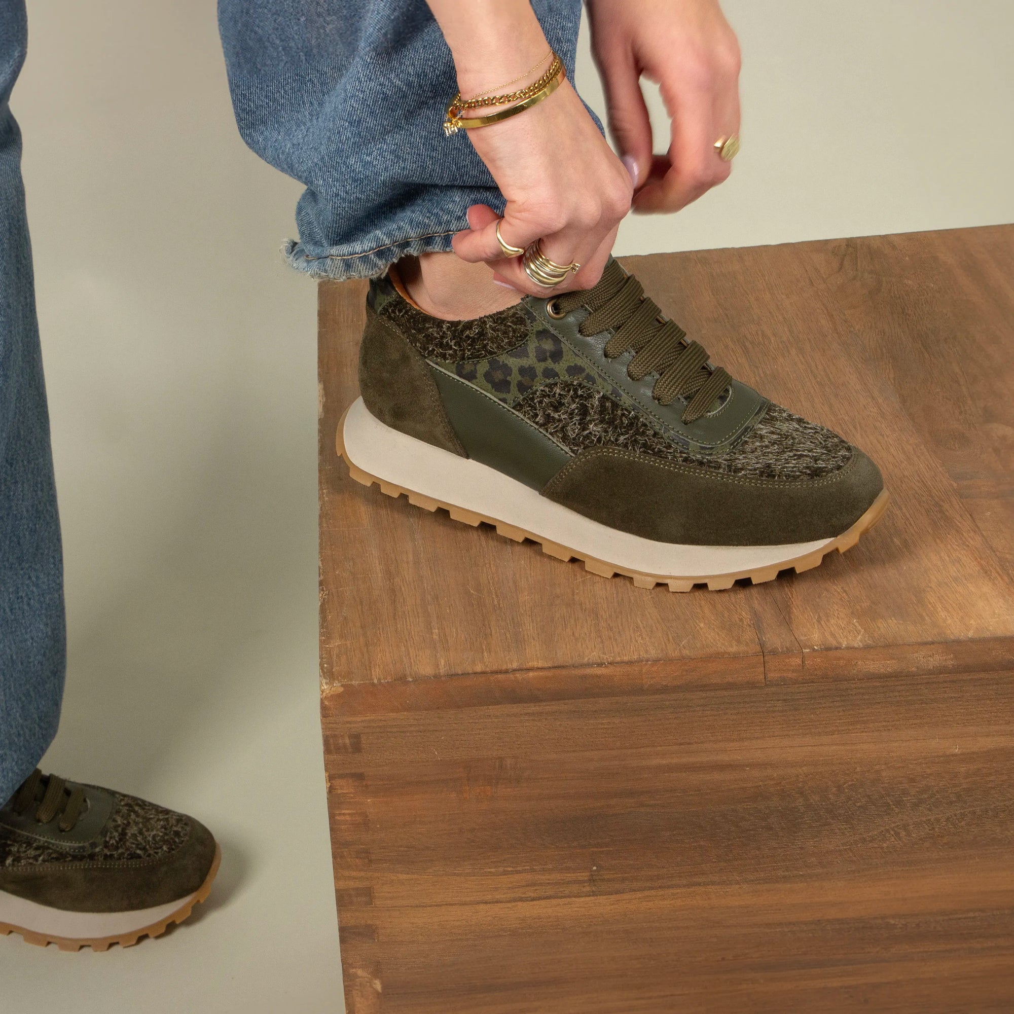 Onmiskenbaar Lazamani, door de mix van materialen en texturen. Deze sportieve sneakers in stijlvol groen en met grove zool zorgt voor comfort en grip, terwijl de zachte leren voering en het uitneembare voetbed je voeten de hele dag ondersteunen. Ideaal voor een casual look met een modieuze twist.